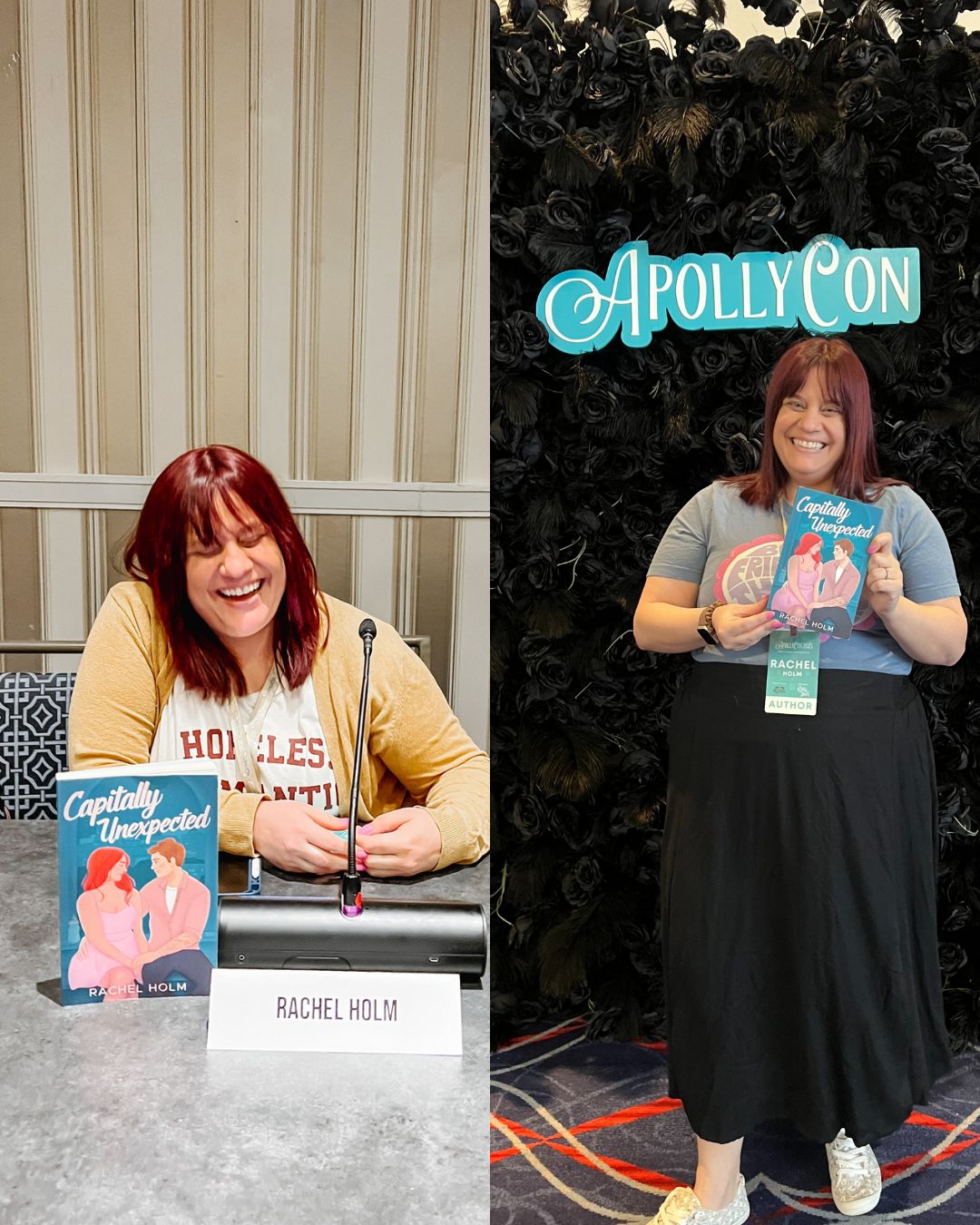 Before moderating the Bookfluencer panel, and holding Capitally Unexpected on release day (so nice of Apollycon to match my cover, yes?)